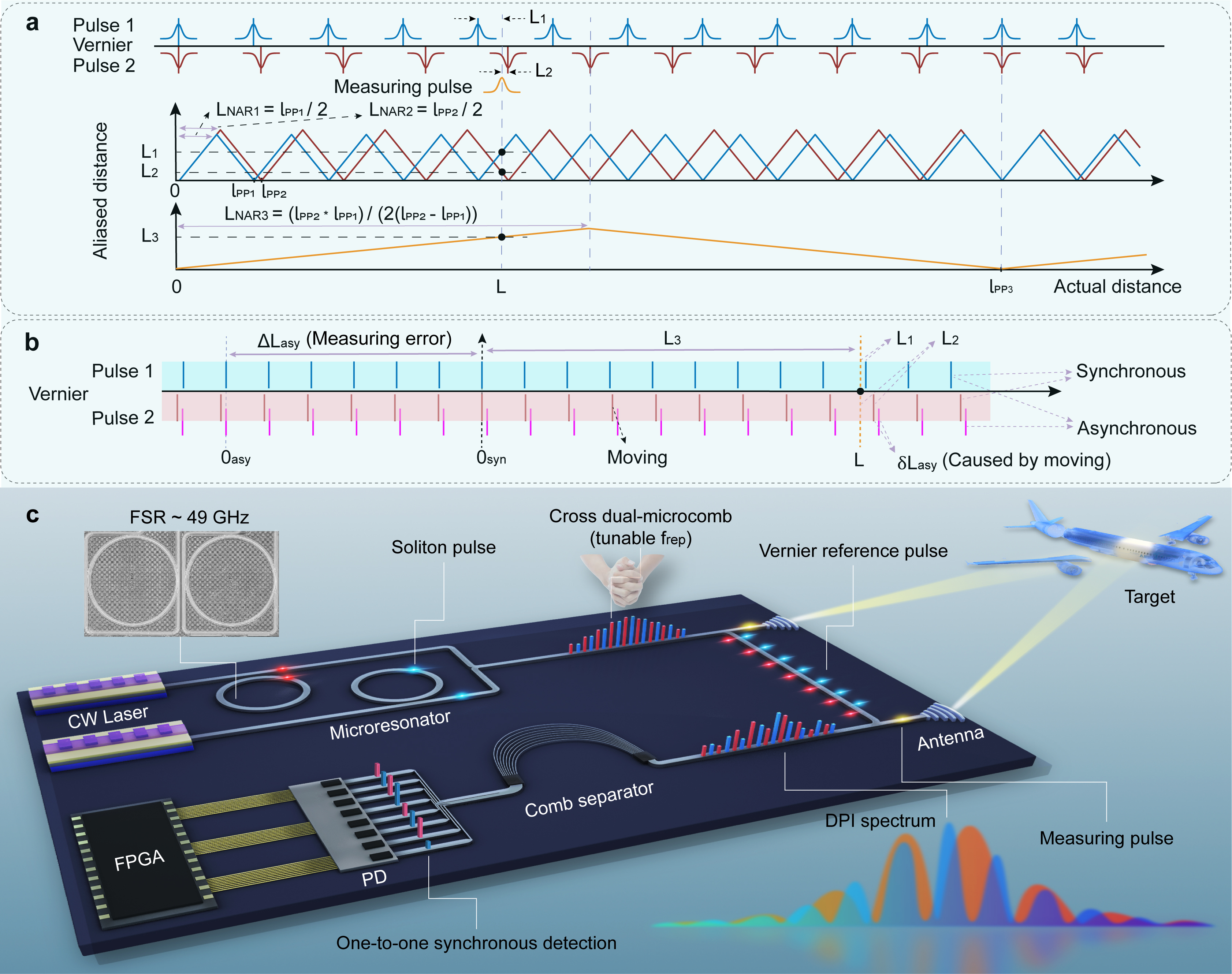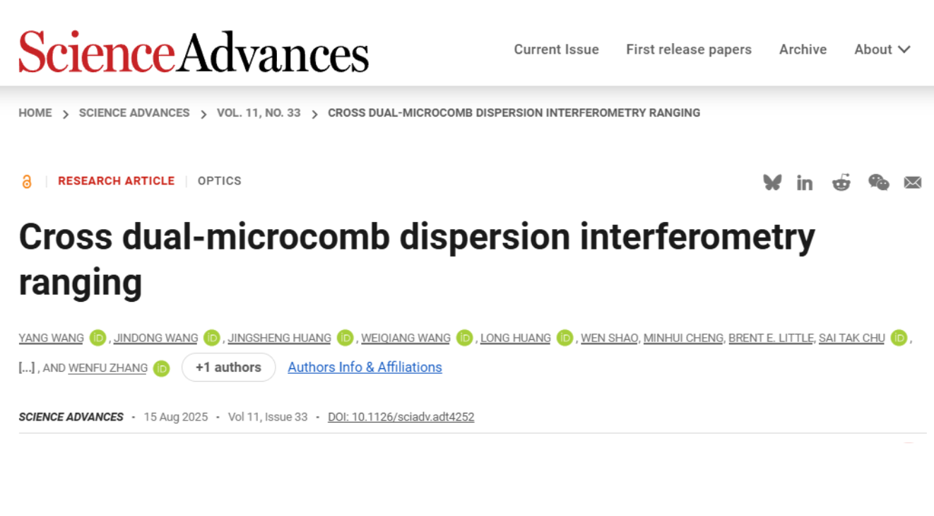 近日,超快光科學(xué)與技術(shù)全國(guó)重點(diǎn)實(shí)驗(yàn)室張文富研究員團(tuán)隊(duì)與其合作者,在基于集成微腔光頻梳的精密測(cè)距領(lǐng)域取得進(jìn)展。研究團(tuán)隊(duì)提出了一種基于集成微腔交叉雙光梳進(jìn)行絕對(duì)距離測(cè)量的新方法,解決了傳統(tǒng)雙光梳測(cè)距方...